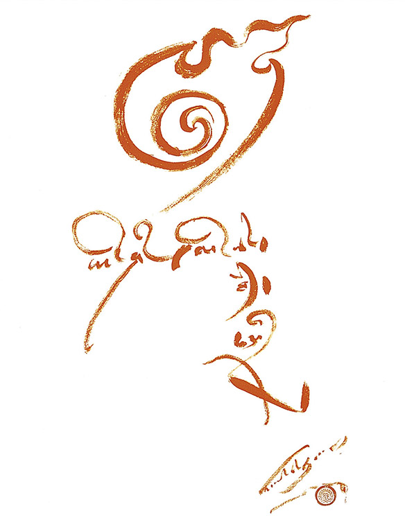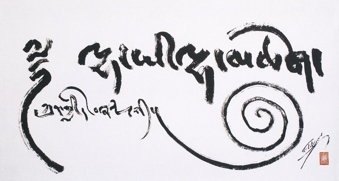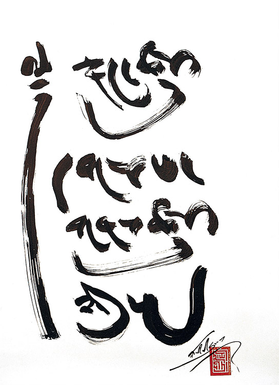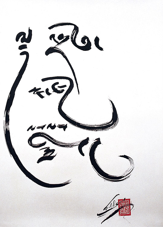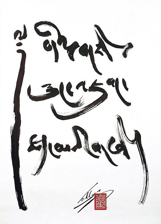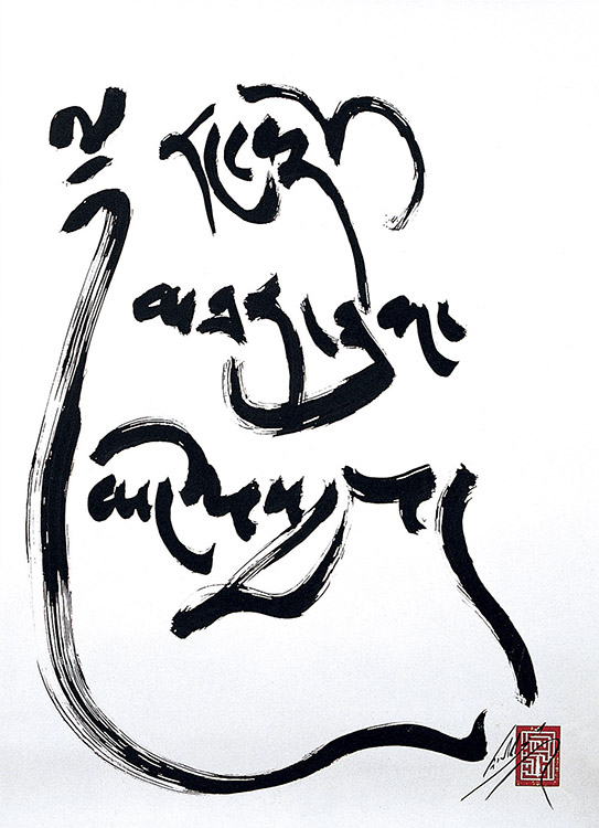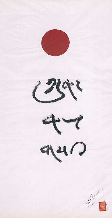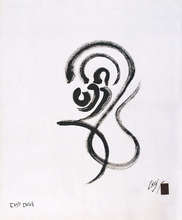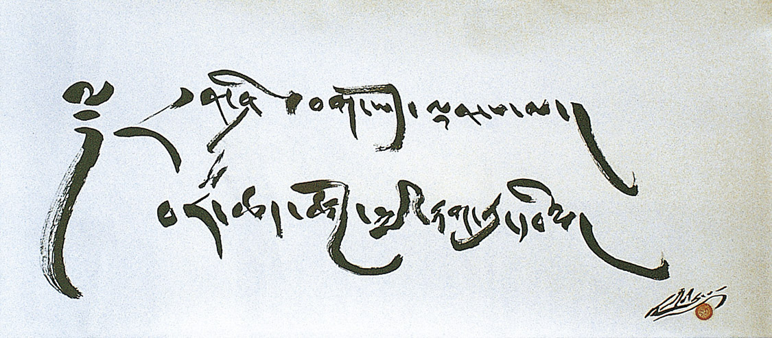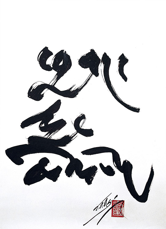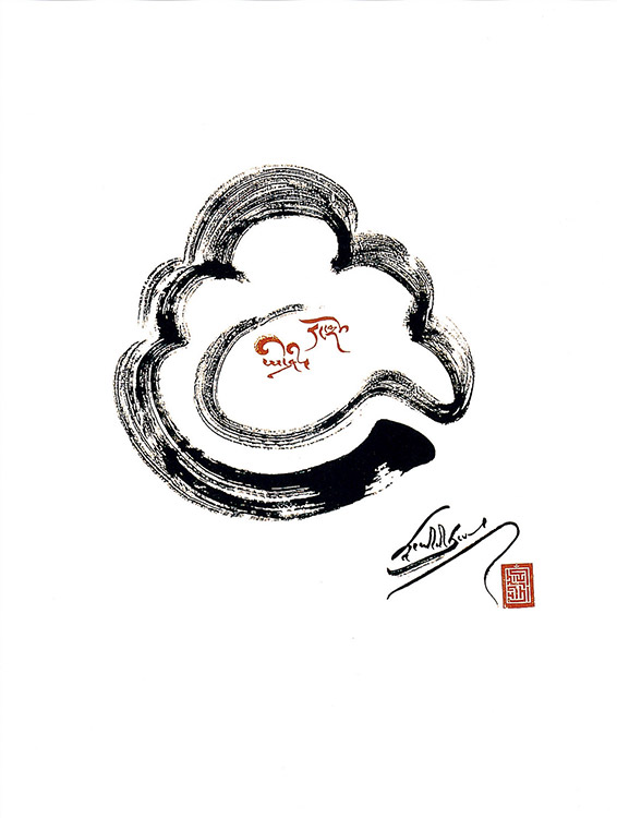 BUDDHA'S CUP OF GREEN TEA Calligraphy: "Spontaneous, Interdependent, Auspicious"
