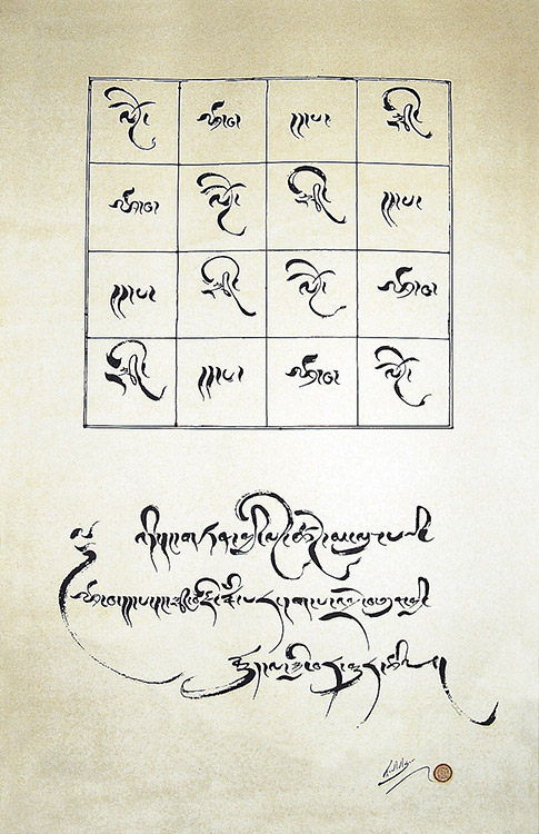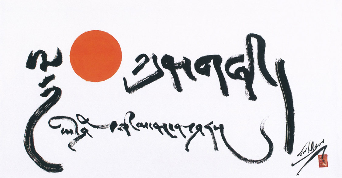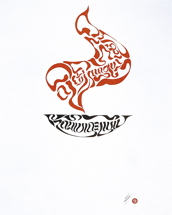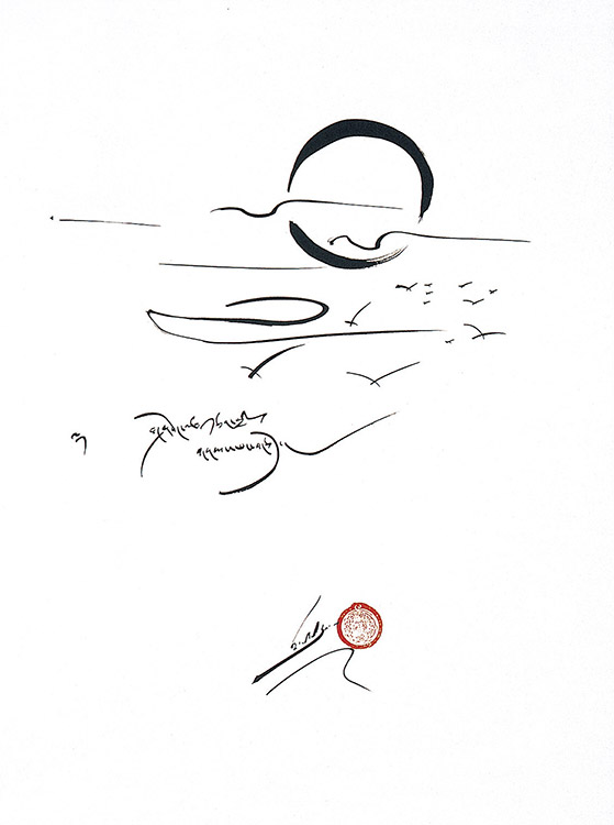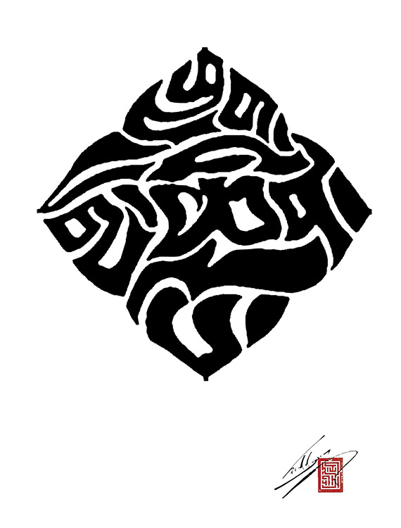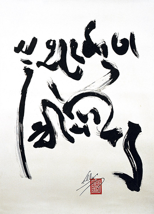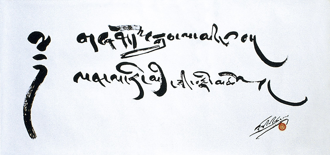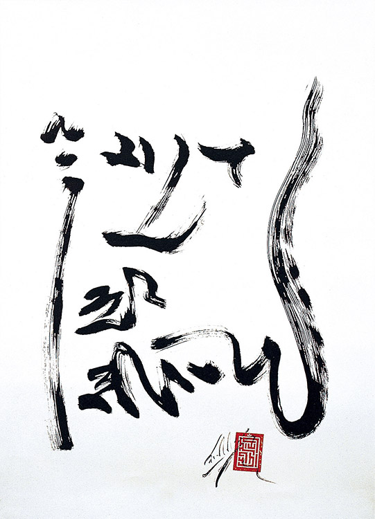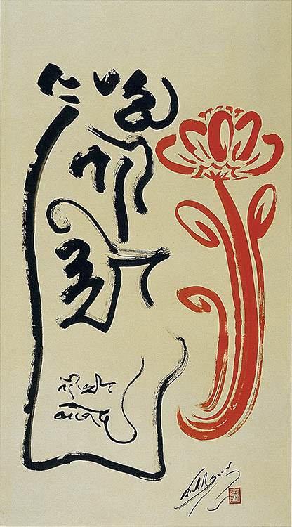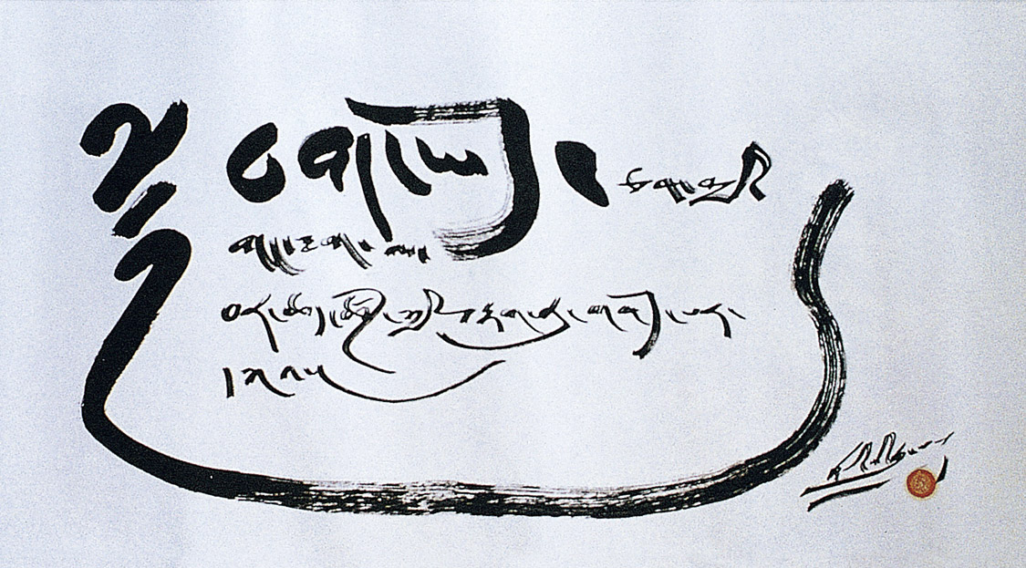 BUDDHA'S CUP OF GREEN TEA Calligraphy: "Spontaneous, Interdependent, Auspicious"
