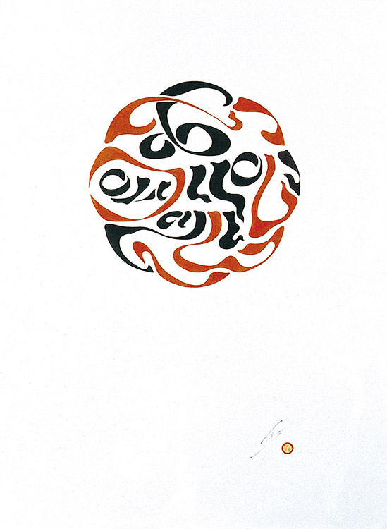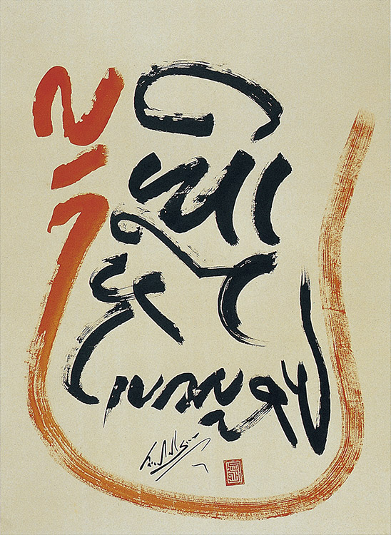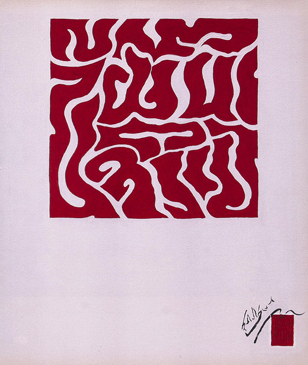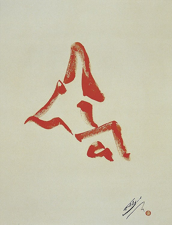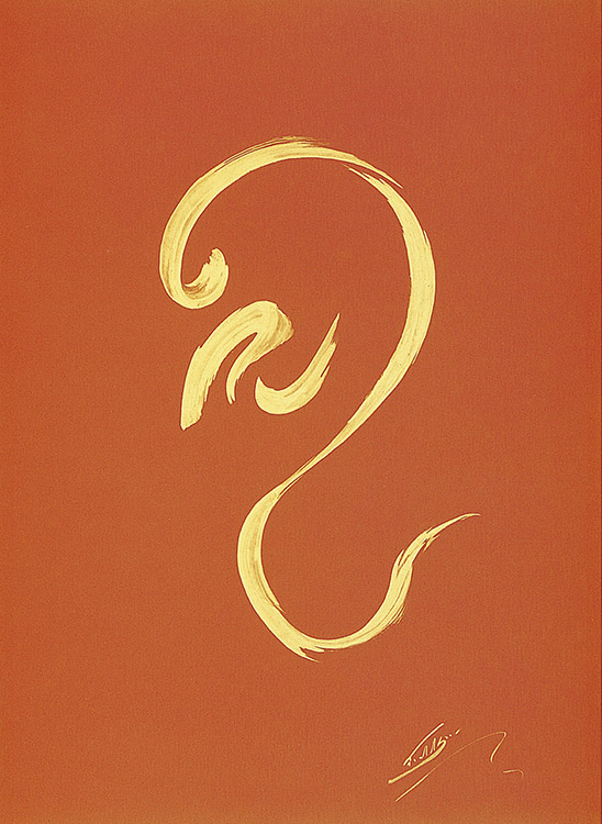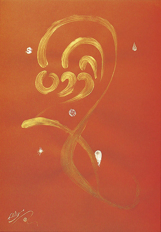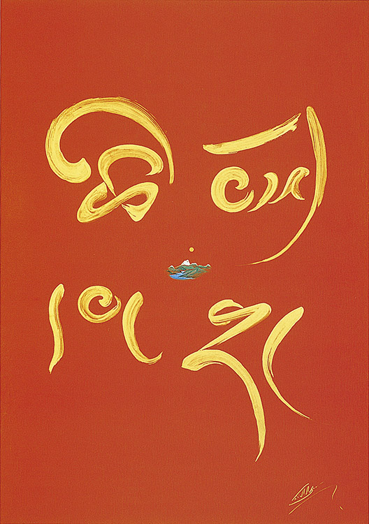 35/6565 x 76 cm, Watercolor, gold on red paper