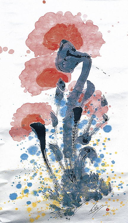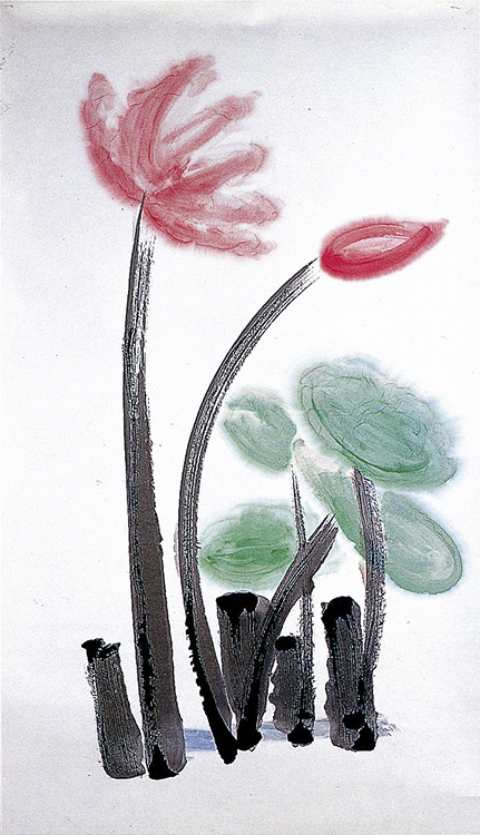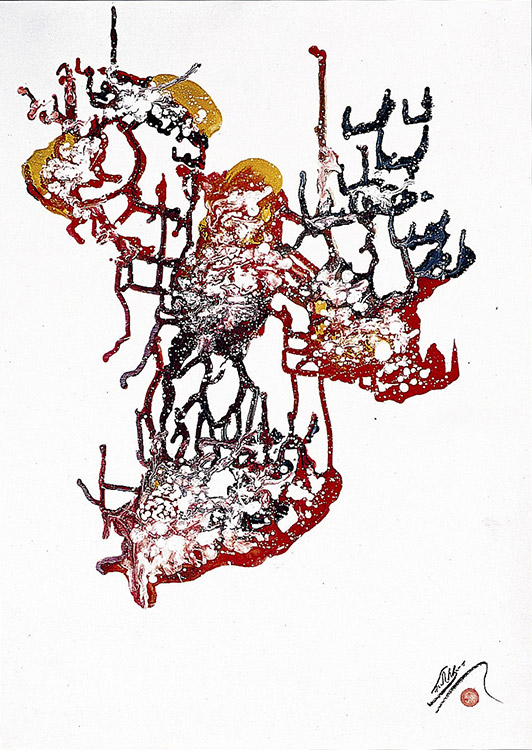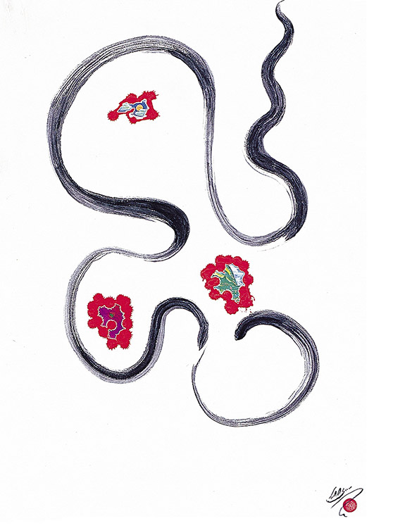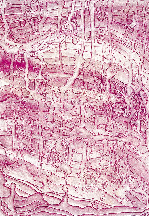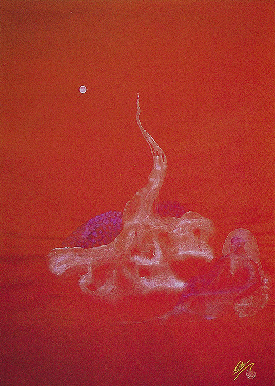 167/19620" x 27", red pearl ink, ink and watercolor on archaic paper, 2005