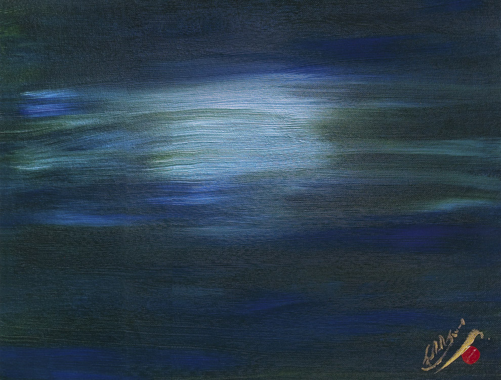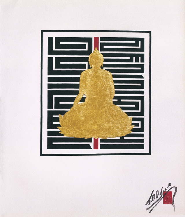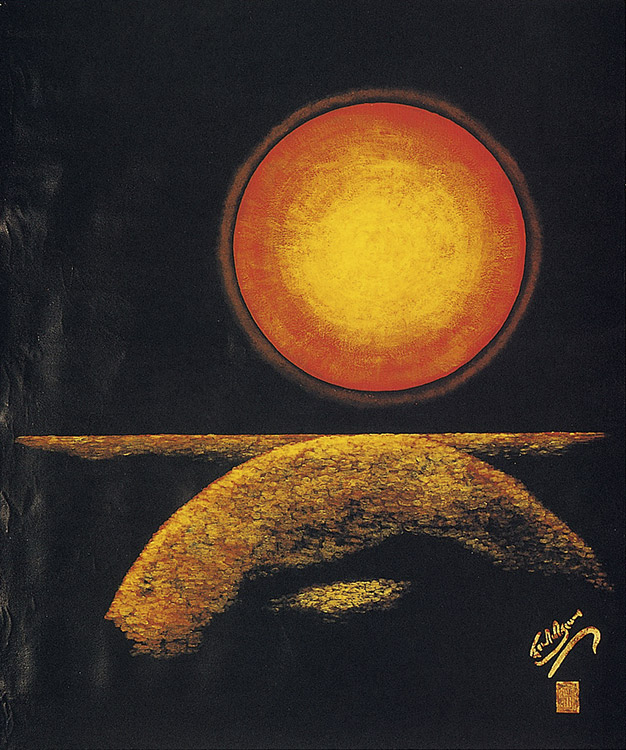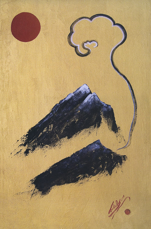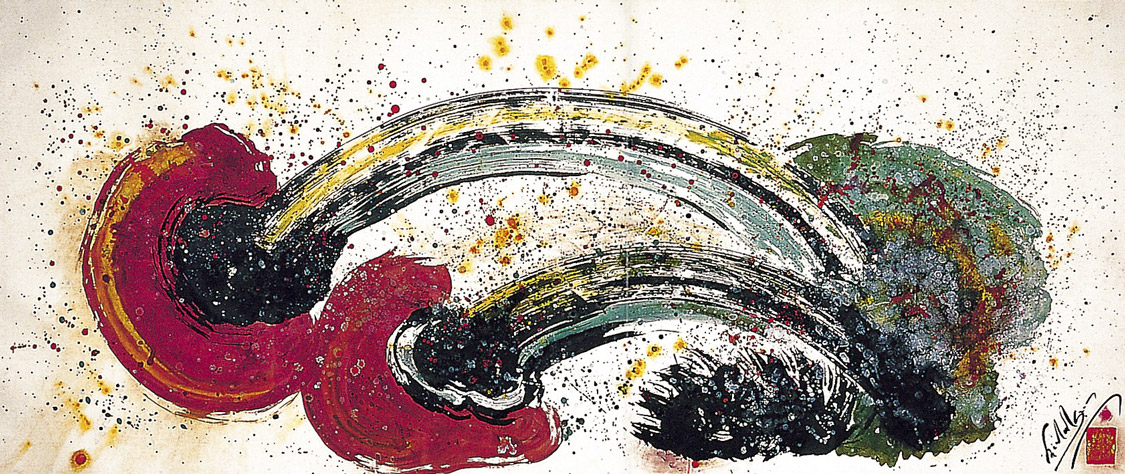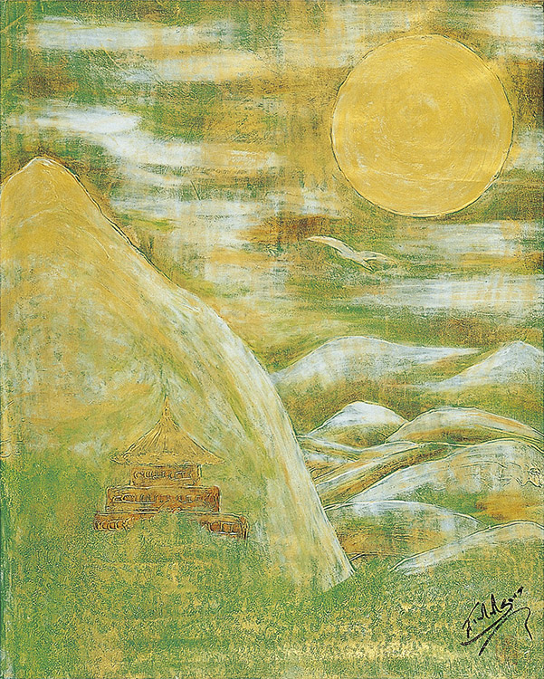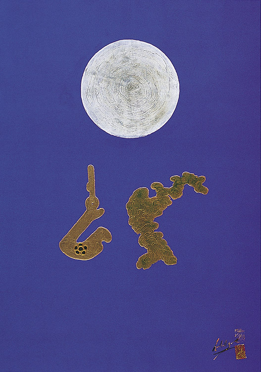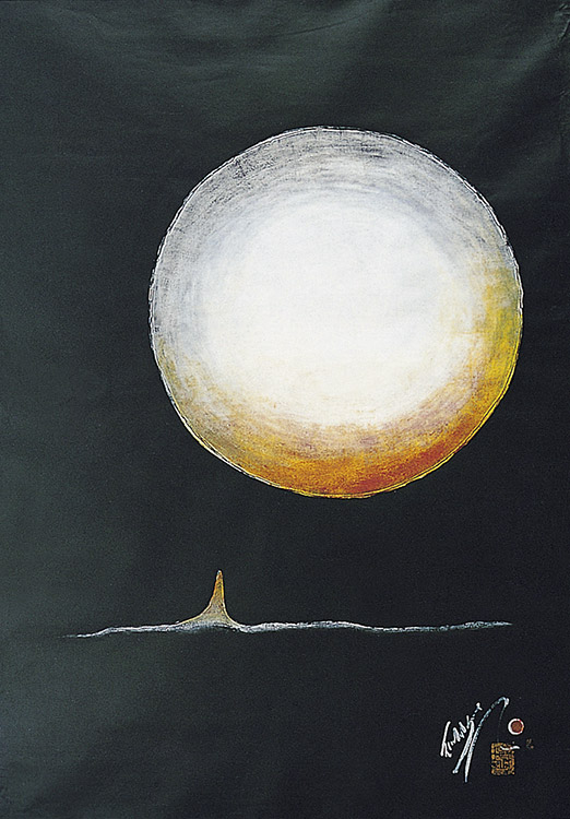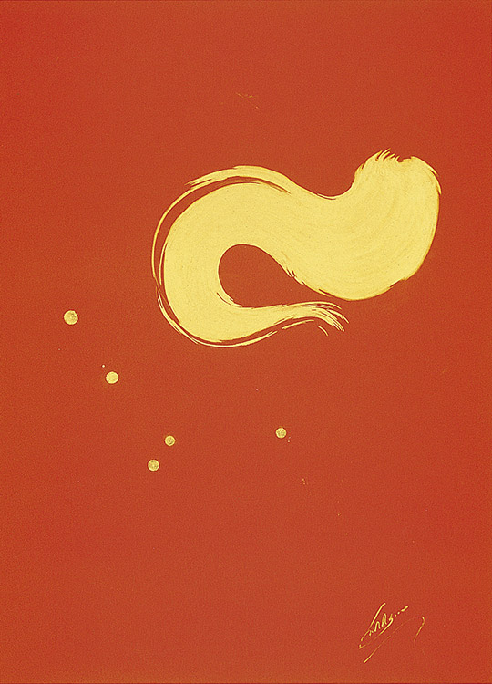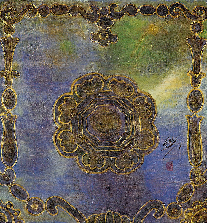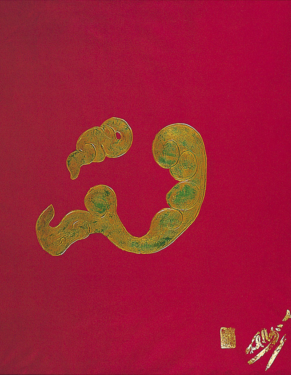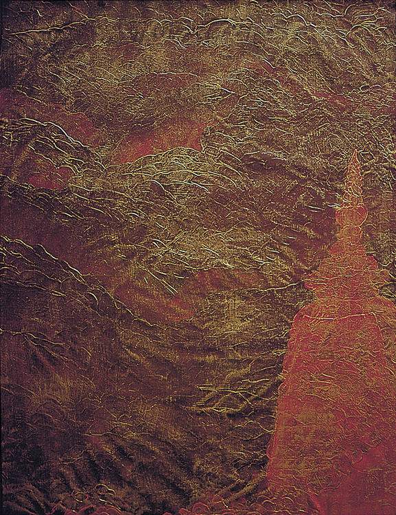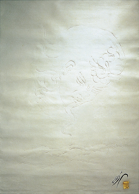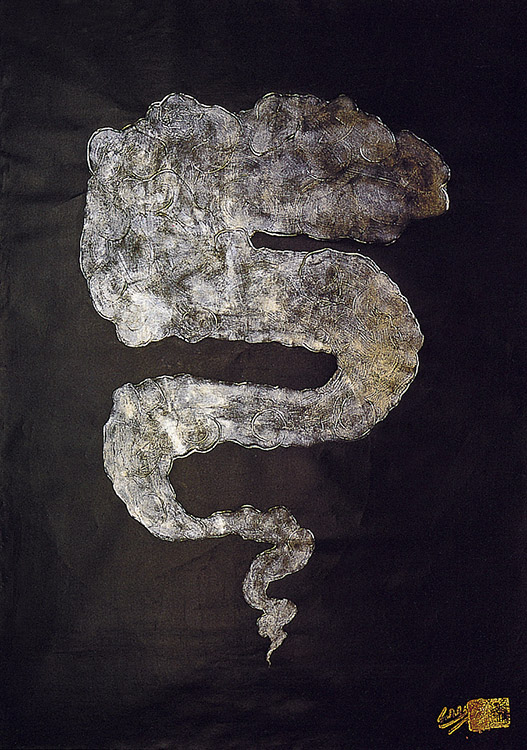 150/19666" x 33", pearl ink, acrylic, gold on silk, 1997