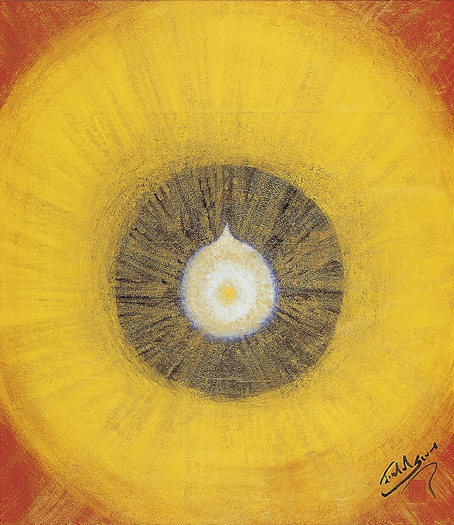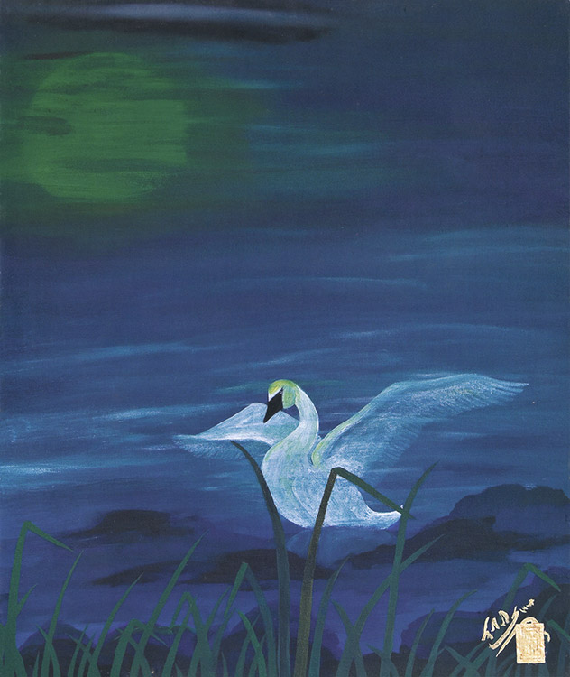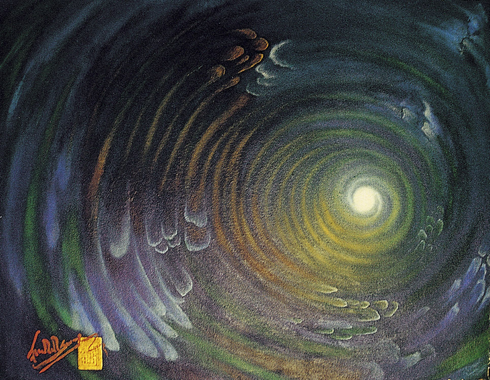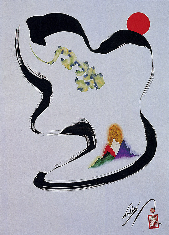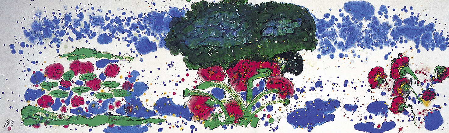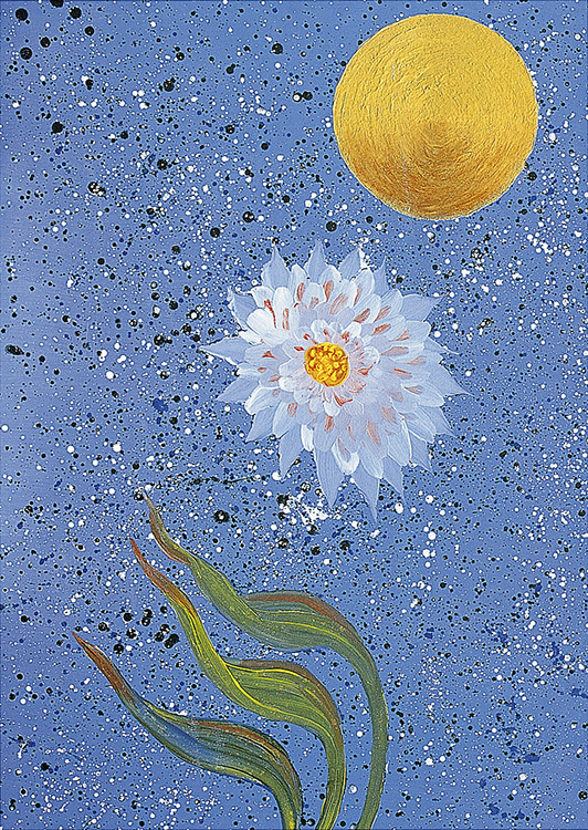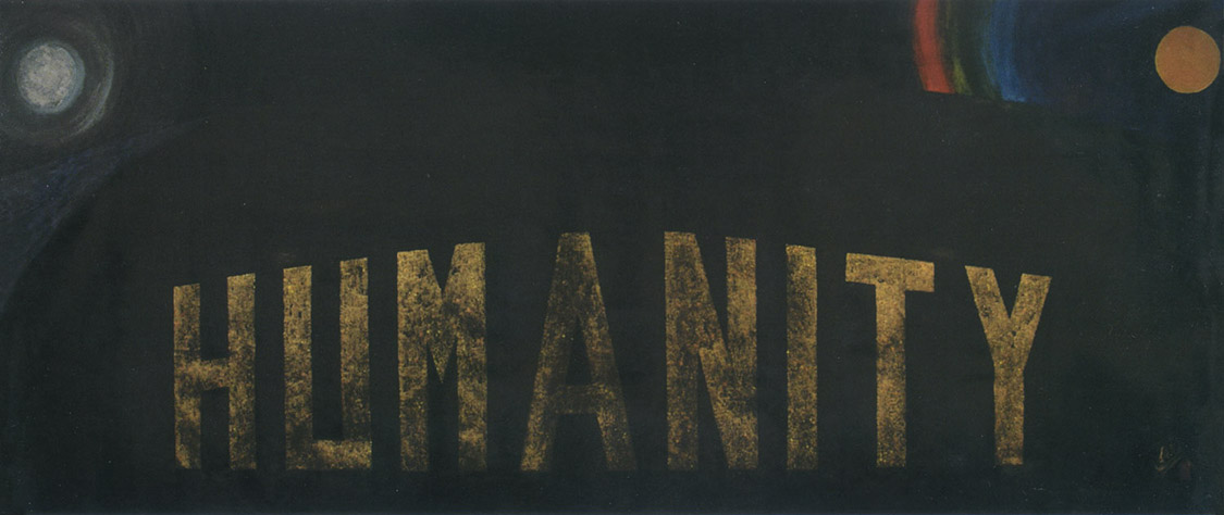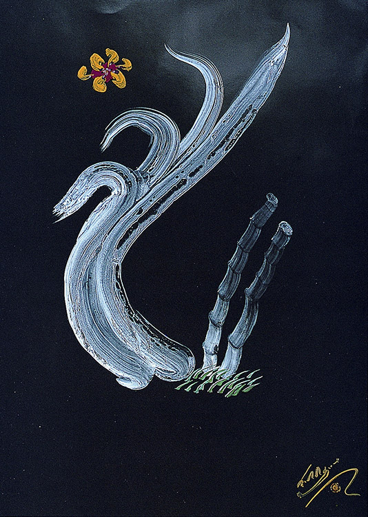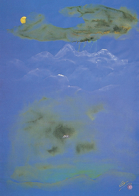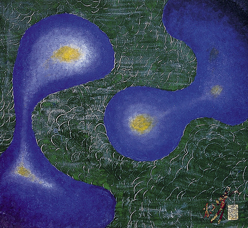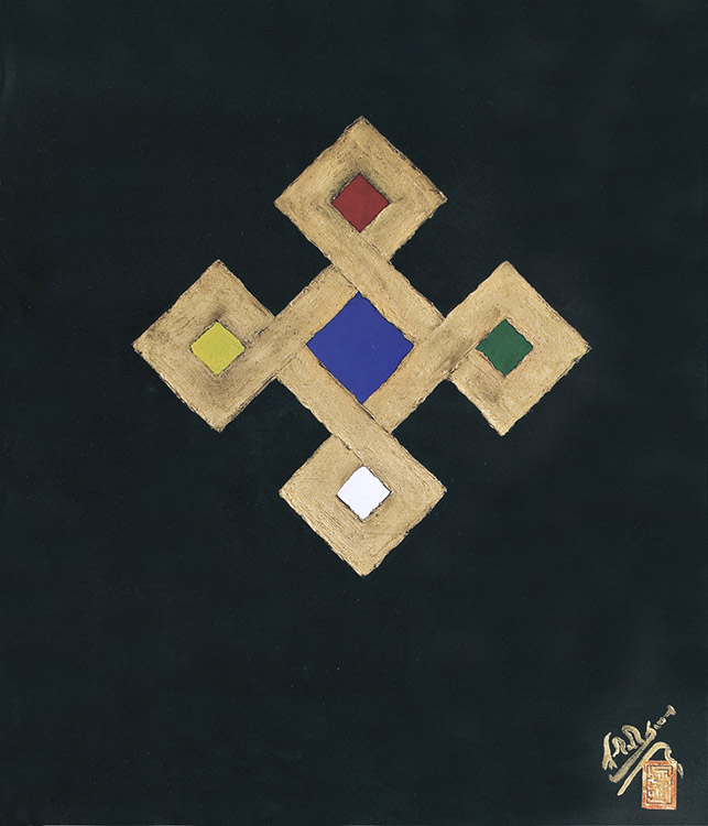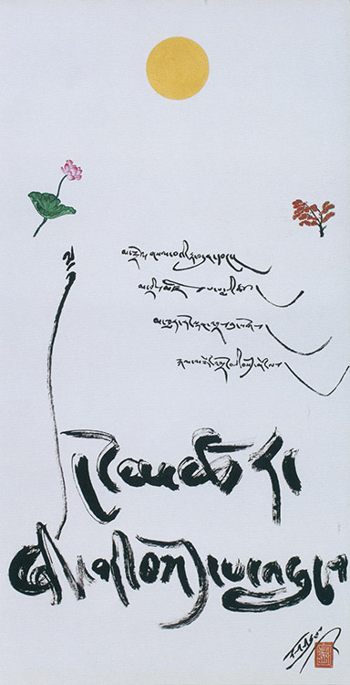 150/19666" x 33", pearl ink, acrylic, gold on silk, 1997