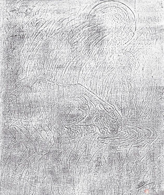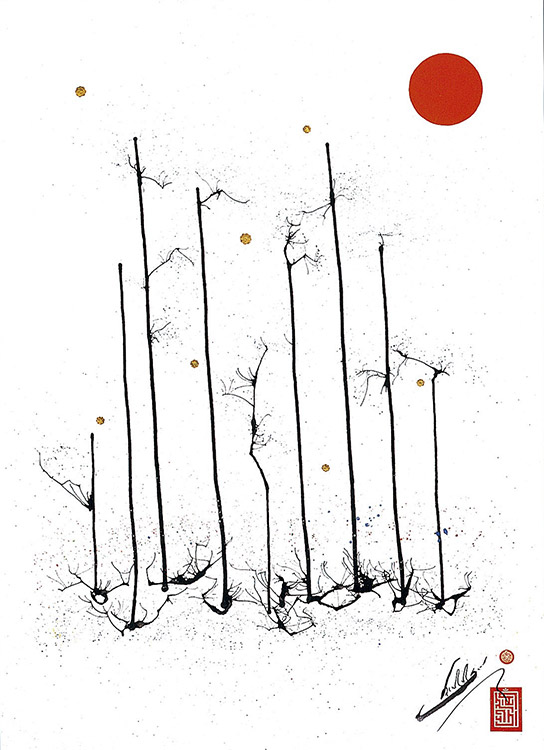 155/19654" x 27", pearl ink and ink on rice paper, 2005