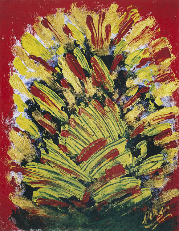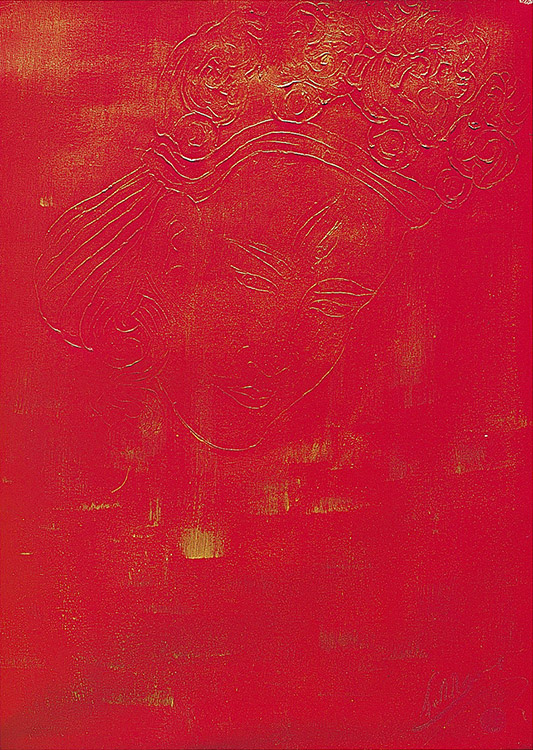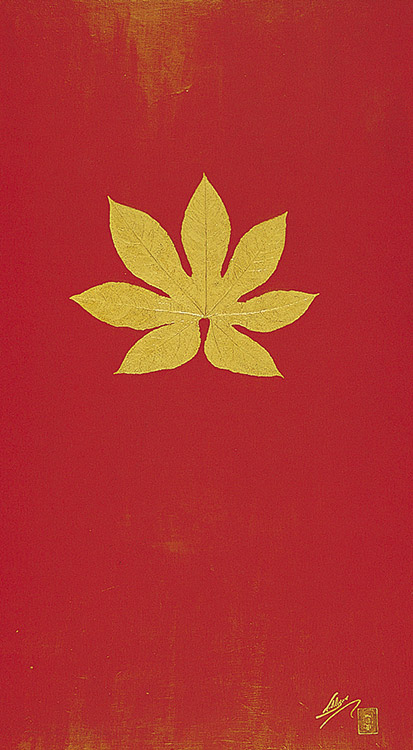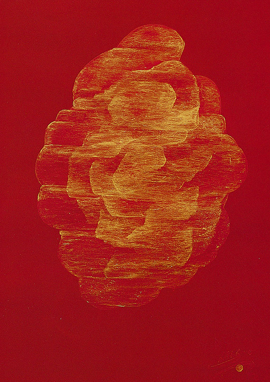 22/19657 x 80 cm, Red Lacquer and gold on canvas