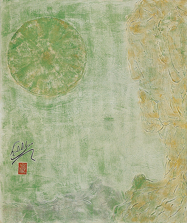 39/19670 x 96 cm, Acrylic, gold wash and gold seal on canvas
