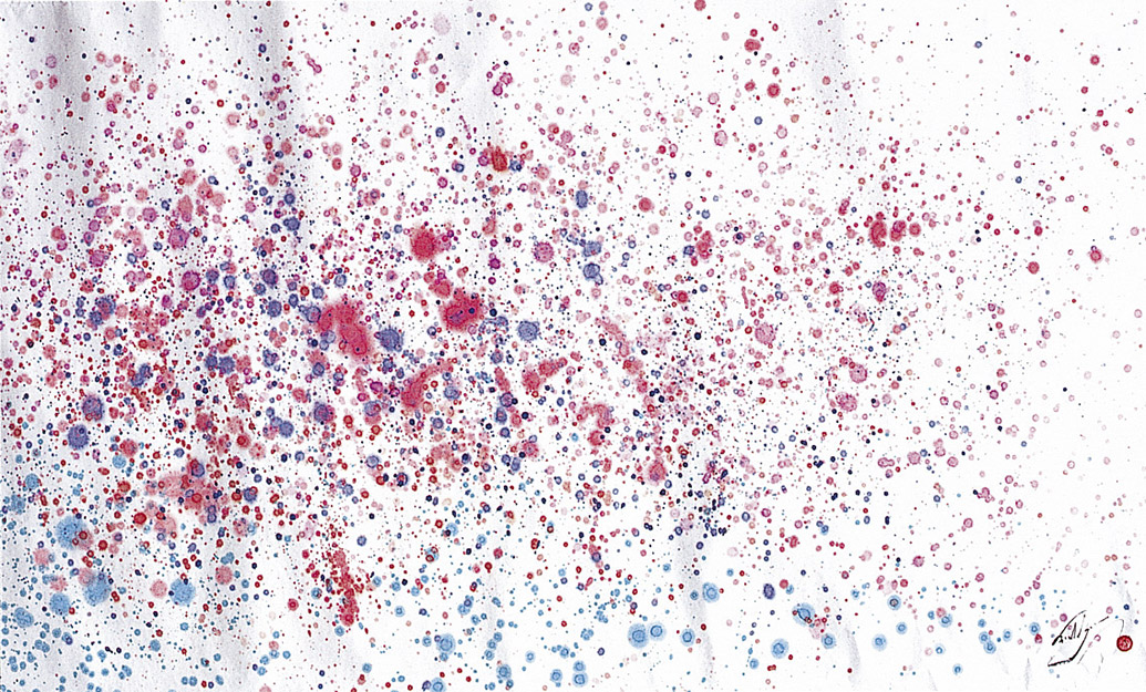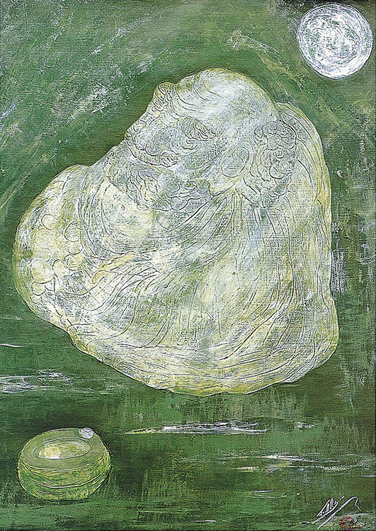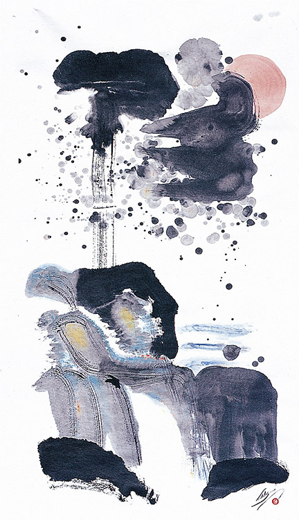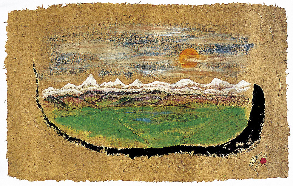 154/19656" x 28", pearl ink and ink on rice paper, mixed media, 2004