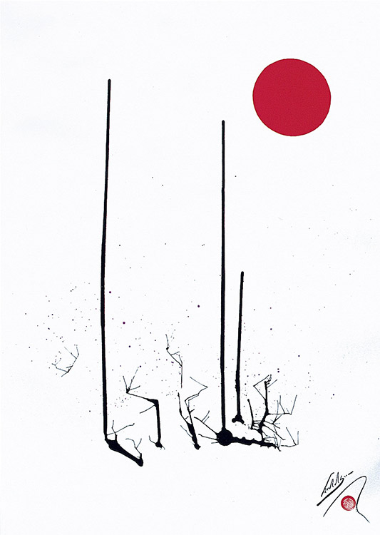 3/19650 x 65 cm, Red, pearl ink on archaic paper