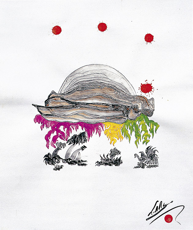 5/19650 x 65 cm,Red, pearl ink on archaic paper
