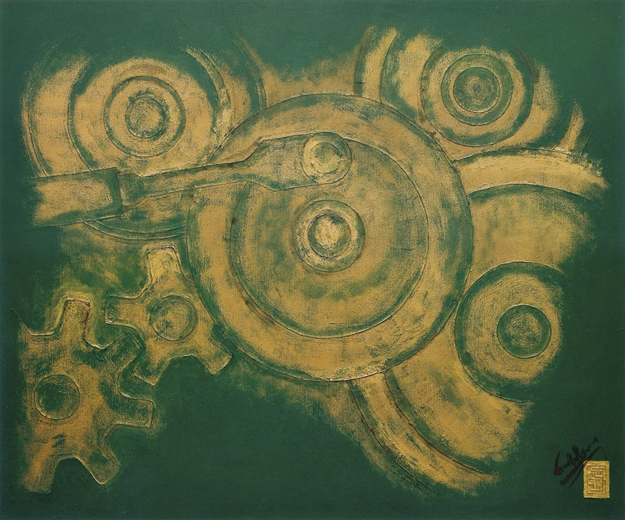34/196100 x 140 cm, Acrylic and gold seal on canvas