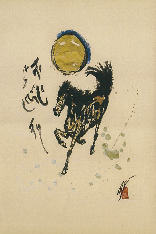 THE MASTER OF SEVEN HORSES, bright without being lit garden of lotus, beautiful unpainted delicious fruit, unprepared by the common merit of the beings fascination realm is born.
