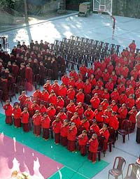 1. 9.00 am all the students and teachers are gathered at play ground of School and Mr. Tsering Wangchuk (Teacher) read the program of the function. 2. Started with Prayers of Lord Manjushree and Lineage Prayers. 3. Speech by Mr. Kunsang Gyatso (Teacher) about improvement of school. 4. Speech from Khenpo Gyaltsen Phuntsok on behalf of Chungpo Gyalton Rinpoche who is Principle of School. 5. General Secretary of Palpung Sherabling Monastic Seat , Lama Tsewang Dakpa joined as chief Guest and he has given talk how to run the school and also appointed some monks on different responsible in school. 6.Group of students has demonstrated some art of exercises. 7. Vote of Thanks is given by Mr. Drakpa (Teacher). The day is concluded with tea ceremony; all the young students are joyful with full of excitement of their school upgrade.
