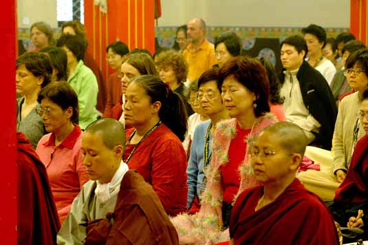 Transmission for fourth year Mahamudra Ocean of Certainty group began April 1, 2008 at Palpung Sherabling Monastic seat in the Palpung Jangchub Chenmo main Shrine Hall. Today is the sixth day of the 8-day program. All participants are using each moment to its fullest by receiving reading transmissions, detailed practice instructions, and by taking the opportunity to ask questions to clarify their understanding of the instructions and transmissions. They are also receiving the benefit of meditation sessions guided in person by the Vajradhara Kenting Tai Situpa who is a manifestation of the future Buddha, Maitreya.