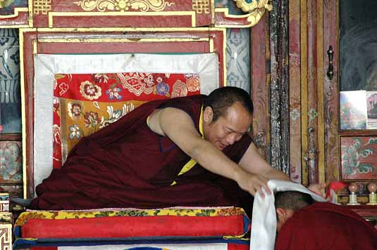 In the morning of the April 10th 2008, Kenting Tai Situpa visited Palpung Lungrig Jampal Ling Buddhist Institute and gave a profound teaching to Khenpos, assistant teachers and students on how to uphold the motivation, intention, view and action throughout their studies. Finally, those monks who had recently sat their yearly exams received a gift as well as their final grades directly from Kenting Tai Situpa.