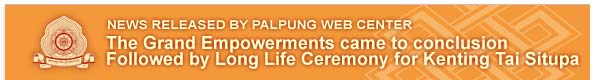 On October 10,2007 the Grand Empowerments of the Kagyu NgaK Zod, and the Dam NgaK Zod came to conclusion. This was followed by the Long Life Puja Ceremony (Guhyasamaj Tantra) for Kenting Tai Situpa which was led by H.E. Jamgon Kongtrul Rinpoche, H.E. Sangye Nyenpa Rinpoche, Very venerable Mingyur Rinpoche, Bo Gangkar Rinpoche, Chungpo Gyalton Rinpoche and joined in great devotion by monasteries, monastic and lay sangha present in great numbers from all over the world. The Long Life Ceremony ended on the 12th October by Grand Offering of Mandalas by Eminent Rinpoches and sangha to express their utter gratitude and heartfelt devotion to Kenting Tai Situpa for compassionately turning the Wheel of Dharma for the benefit of all sentient beings. At the request of Thutop Rinpoche and other eminent Rinpoches, Kenting Tai Situpa has agreed to give empowerments and transmission from the Gyachen Kang zod and Sheja Kunchap Zod. The dates for the empowerment will be notified later.
