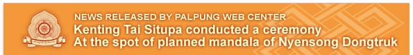 November 1st, 2007 Kenting Tai Situpa conducted a ceremony at the spot near the nuns retreat center at Palpung Sherabling. A grand mandala of Nyensong dongtruk is going to be built there. Devotees related to this project also participated the ceremony on this day.