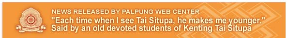 Mr Harry Milward, aged 95 from Samye Ling Centre in Scotland has been a devoted student of his root Guru Kenting Tai Situpa for many years. From Kenting Tai Situpa he received teachings and instructions of the Mahamudra Ocean of Certainty over seven years, and has diligently fulfilled all the commitments related to this transmission of Mahamudra practice. Recently Harry came to Delhi and spent three days with his root Guru to receive further teachings and blessings. As he prepared to return to Scotland with his son David, Harry said 'Each time I see Tai Situpa he makes me feel younger'.