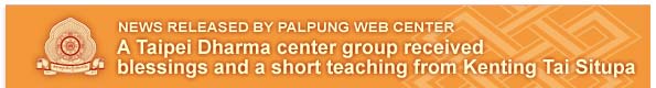 A group of devotees headed by Lama Jangchub from the Taipei Dharma center, founded by His Eminence Kalu Rinpoche, received blessings and a short teaching from the 12th Kenting Tai Situpa on January 18, 2008. Kenting Tai Situpa explained how important it is to have an understanding of the role Karma, compassion and devotion play on the path. It is through this that we can eventually realize the oneness of our own limitless potential and the ultimate final destination of all sentient beings - Buddhahood.