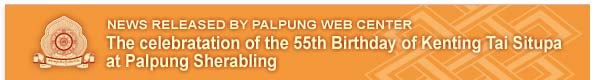 On 14th Febuary,2008 Palpung Sherabling Monastic Seat celebrated the 55th Birthday of Kenting Tai Situpa while Kenting Tai Situpa Rinpoche visited Bodhgaya, India. Rinpoches, Lamas, Monks, Nuns and lay devotees made prayers and offerings of a traditional ceremony which included a beautiful gigantic western-style cake which was decorated by the host, , in front of a photograph of Kenting Tai Situpa. Various participants also made offerings of song in different languages. The presiding Rinpoche for the birthday celebration at Palpung Sherabling Monastic seat was the Venerable Shagam Rinpoche who led the celebration with moving devotion.