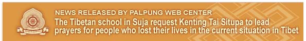 On the 6th of April 2008, The Tibetan School in Suja requested that Kenting Tai Situpa lead prayers for people who lost their lives in the current situation in Tibet. They also requested advice on what attitude should be taken by people in this kind of situation. Kenting Tai Situpa gave very profound advice both for Tibetans and all people.