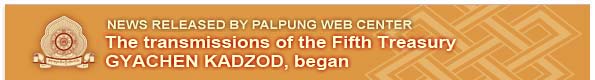 October 11 marked the beginning of a series of transmissions of Jamgon Kongtrul Lodro Thaye's Fifth Treasury, GYACHEN KADZOD given by Chamgon Dorje Chang Kenting Tai Situpa at Palpung Sherabling Monastic Seat. This series of empowerment transmisions is being attended and received by numerous devotees from around the world and will go on for several weeks.