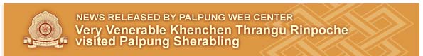 On October 19, 2008 the Very Venerable Khenchen Thrangu Rinpoche paid a visit to Palpung Sherabling Monastic Seat where he was warmly welcomed by the Sangha in an elaborate ceremony, He then spent several hours with Chamgon Kenting Tai Situpa and then departed that same day.