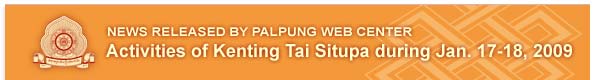 As a result of numerous requests from many individuals wishing to receive ordination as novice monks and nuns, Chamgon Kenting Tai Situpa ordained 21 monks and 5 nuns on the morning of January 17th 2009 in Delhi. That same afternoon His Eminence Jamgon Kongtrul Rinpoche paid a visit to Chamgon Kenting Tai Situpa at his residence during which they spent several delightful hours together as a father and son might. At 4:00 PM Chamgon Kenting Tai Situpa taught on Violence and Peace, at the Tushita Center in Delhi at the request of its directors. Kenting Tai Situpa explored this subject profoundly sharing many of his own personal experiences from his work for Peace. At the same time Kenting Tai Situpa encouraged students to seek ACTIVE PEACE rather just Passive Peace. In essence this means that categorically avoiding war does not mean that we are not still destroying this planet. If we don’t care about the environment and about educating ourselves and if we continue to use this planet as we have done so far, without regard or responsibility then we are still actively destroying this world. Religious harmony, education, environment and cognizance are the responsibility of each individual and not just government. There have also been many requests from many novice monks to have full ordination (Gelong) from Chamgon Kenting Tai Situpa. So, these ordinations took place on January 18, 2009 between 7:00 AM and 12:00 PM. There were 34 novice monks who received full ordination and Chamgon Kenting Tai Situpa also advised them on the importance of maintaining these vows and encouraged them to keep them with utmost admiration. That same afternoon some students of Karma Triyana Monastery from Woodstock, New York came with the Venerable Bardo Rinpoche to receive the blessing from Chamgon Kenting Tai Situpa. Later the Venerable Bardo Rinpoche spent some private time with Chamgon Kenting Tai Situpa.