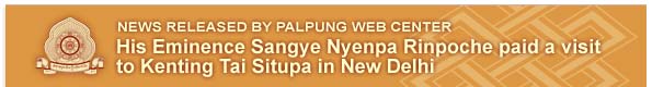 His Eminence Sangye Nyenpa Rinpoche paid a visit to Kenting Tai Situpa on February 1, 2009 in New Delhi. The two spent many hours together and enjoyed themselves so much that it gave one the feeling of seeing two brothers who hold each other in the highest most enlightening esteem. Download Photos
