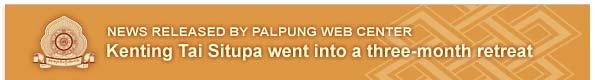 Chamgon Kenting Tai Situpa went into retreat at Palpung Sherabling Monastic Seat on May 14, 2009 until mid-August 2009. Exceptionally, from May 27-29, for three days, Kenting Tai Situpa will interrupt his retreat to give teachings that were requested last year by the Venerable Khenpo Lodhen. However, there will be no public or private audiences granted during these 3 days, as Kenting Tai Situpa will continue his retreat between teaching sessions. After May 29th, Chamgon Kenting Tai Situpa will continue in an uninterrupted retreat, for the benefit of all sentient beings, until mid-August, 2009.