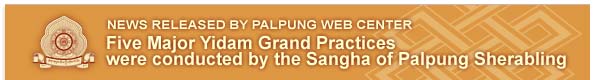 Five Major Yidam Grand Practices were conducted by the Sangha of Palpung Sherabling Monastery between May 1st to June 15th 2009. Each Yidam practice performed included the building up of Sand Mandalas. The practices done were for the following five Yidams: 1- Vajra Yogini - May 1-8 2- Chakrasamvara - May 10-17 3- Hevajra - May 19-26 4- Gyalwa Gyamtso (Red Chenreyzik) - May 28-June 4 5- Kalachakra - June 9-15