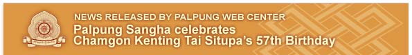 From 4:00 am to 9:00 am on the 8th day of the first lunar month (February 22nd this year), the Sangha of Palpung Sherabling Monastic Seat conducted the Sang and Long-Life pujas in celebration of the 57th Birthday of Chamgon Kenting Tai Situpa. At 9:30 am Rinpoche was invited to his throne and the Very Venerable Gangkar Rinpoche and the Very Venerable Gyalton Rinpoche, followed by all the Tulkus, Sangha and devotees present, made a traditional Mandala offering. At the same time, traditional Tibetan Tea and saffron Rice was served to everyone. From 8:00 pm to 11:00 pm a Traditional western style cake ceremony took place. The young monks of Palpung Sherabling School offered artistic performances in the courtyard of the Main Monastery. Finally there was a dedication of long life prayers for Chamgon Kenting Tai Situpa.
