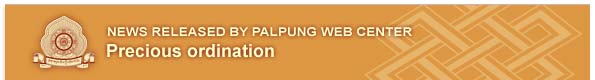People who become monks and nuns often see their ordination as the most important event in their lives. Additionally most regard it as even more fortunate if they receive these vows from one of the precious lineage masters of the golden rosary. To this end many sangha from His Eminence Jamgon Kongtrul Rinpoche's monasteries in Nepal and Lawa , many sangha from the Very Venerable Mingyur Rinpoche's monasteries in Bodhgaya and Nepal as well as various people from around the world, came to Palpung Sherabling Monastic seat to receive ordination recently. In total, 110 young monks received novice ordination and 5 nuns also received novice ordinations. 95 monks received full ordination making a total 210 fortunate individuals who received ordination from the Vajradhara Chamgon Kenting Tai Situpa on December 30, 2010.