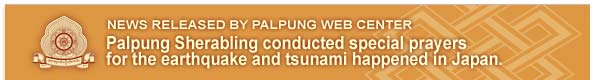 Chamgon Kenting Tai Situpa has personally sent a message to the Prime Minister of Japan with condolences and prayers for the people affected by the recent earthquake and subsequent tsunami that have divested the nation. In addition, another message from General Secretary Lama Tsewang Dakpa of Palpung Muni Shasan Dharma Chakra Sangha Foundation was also sent on behalf of all Sangha of Palpung Monastic Seat and its branches with similar condolences. On March 14, 2011 all the Venerable Tulkus, Lamas, Monks and Nuns of Palpung Sherabling Monastic Seat conducted special prayers following the recent massive earthquake and tsunami. These prayers included a ten-thousand butter-lamp offering and were dedicated specifically to those people who lost their lives in the disaster; to their grieving families as well as to those who survived and now face physical, emotional and financial recovery. Finally the prayers were also dedicated to the peace of this world so that no other such disasters occur and that beings here may live peacefully and harmoniously with the environment.