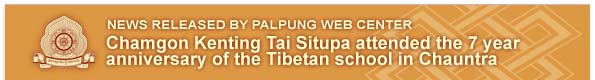 On November 21, 2011 the Tibetan school in Chauntra commemorated the 7 year anniversary since its establishment. The principal and school administrators requested that Chamgon Kenting Tai Situpa be the guest of honour at the function and that he bestow the nectar of dharma advice to all students and staff in attendance. Kenting Tai Situpa obliged them and attended the event giving enlightening heart advice to everyone there.