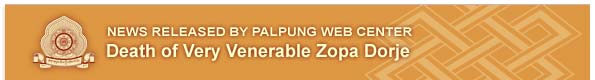 Venerable Zopa Dorje was a dedicated monk of the Palpung lineage and was ordained by 11th Chamgon Tai Situ Pema Wangchok Gyalpo. He studied the Palpung lineage curriculum very diligently according to the tradition of Palpung Thubten Chokhor Ling monastic seat and was eventually appointed joint discipline master of Palpung Thubten Chokhor Ling. He held this position for many years while also maintaining his role as Ambassador of Palpung monastic seat to several monastic estates in various kingdoms in Kham. In 1954 the current, 12th Chamgon Kenting Tai Situpa was recognized and enthroned by His Holiness the 16th Gyalwang Karmapa at just 18 months old. The enthronement took place at Palpung Thubten Chokhor Ling Monastic Seat and at that time Venerable Zopa Dorje was appointed nanny of the young Chamgon Kenting Tai Situpa by the late Eminence Sangye Nyenpa Rinpoche and the Sangha of Palpung. From that time until 1976, he took care of Chamgon Kenting Tai Situpa just like mother and father take care of their children. On several occasions he also served Chamgon Kenting Tai Situpa and His Eminence the 3rd Jamgon Kongtrul Rinpoche during their visits to Bhutan and different parts India for pilgrimages. Guided by the vision of Vajradhara Chamgon Kenting Kenting Tai Situpa, the establishment of Palpung Sherabling Monastic Seat in Himachal Pradesh, India began in 1977. The Venerable Zopa Dorje was appointed by Guru Vajradhara to manage the entire project, at a time when the land on which Sherabling now stands was all jungle and there was not even a road. Without hesitation he promised to fulfill the enlightened vision of Chamgon Kenting Tai Situpa. Venerable Zopa Dorje couldn’t speak any language except Tibetan but he nonetheless took on this hardship and accomplished the tremendous achievement of managing the construction of the first phase of Palpung Monastic seat. His own personal lifestyle was simple as befits a monk and his love and care for everyone in the mandala of Palpung Monastic seat touched everyone who has loved there. His devotion and dedication toward his Guru Vajradhara was of utmost purity and serves as an example and teaching to the Sangha of the Palpung lineage. His devotion to the lineage Gurus was strong especially to the 9th and 10th Eminences Sangye Nyanpa Rinpoche and the late Very Venerable Ripa Saljay Rinpoche. Since 1990 he was in semi-retirement from his responsibilities due to his age and health and so spent all his time in meditation according to the Mahamudra lineage. From time to time he sought clarification on his practice from Guru Vajradhara Chamgon Kenting Tai Situpa, His Eminence Sangye Nyenpa and the Very Venerable Saljay Rinpoche. Suddenly in January 2012, his health became very fragile and he was immediately taken to Delhi by Chamgon Kenting Tai Situpa and admitted in the Max Hospital in ICU for 21 days. While there doctors found that his heart was weak and also found a brain tumor. During the treatment at Hospital, Chamgon Kenting Situpa visited him every day and spent time with him. The doctors eventually discharged him with the advice that he rest at home. He spent nearly two weeks at the residence in New Delhi with Guru Vajradhara Chamgon Kenting Tai Situpa, until signs of breathing difficulties and again led to his admittance at the Apollo Hospital in ICU on February 9th. On the morning of February 13th at 6:30 am he passed away as a result of a heart attack. His body was then transported back to Palpung Sherabling monastic seat via Hospital Ambulance equipped with full air-conditioning. Throughout the transportation his body remained in meditation and was still warm and physically very flexible even after the nearly 18 hour drive; an indication that he died in meditation. His body was enshrined in the Red Crown Hall of the Monastic seat and Phowa was performed by Guru vajradhara Chamgon Kenting Tai Situpa joined by all the lamas. The 49 day puja is now being carried out at the monastery including different mandalas of various Yidams according to the Palpung tradition. On the third day after his death Guru vajradhara lead a Puja on the mandala of Buddha Akshobya in the Red Crown Hall where the late Very venerable Zopa Dorjees body is enshrined. He will be cremated on February 17, 2012 according the astrological prescription.