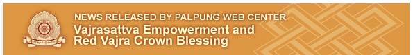 The 5th year Mahamudra transmission from Guru Vajradhara Chamgon Kenting Tai Situpa was completed on 8th April 2012 which was also the last day of a 10-day Vajrasattva Drubchen at Palpung Sherabling Monastic Seat. Ordained Sangha, Mahamudra students and members of the public received the Vajrasattva Empowerment and the Red Vajra Crown Blessing from Guru Vajradhara Chamgon Kenting Tai Situpa in the main courtyard of the monastery. In the evening there was a grand feast (Ganachakra) for the 5th year Mahamudra students, which was also attended by Guru Vajradhara Chamgon Kenting Tai Situpa.