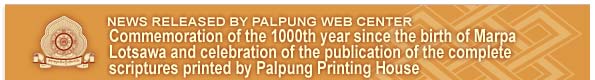 In the later period of the spread of Buddhism in the land of snow, Guru Marpa Lotsawa was one of the eight pioneers of the Practice Lineages, the source of the countless stars of spiritual masters and practitioners in space, the founder of the Kagyu Tradition of Guru Marpa Lotsawa – that is, the stainless refined gold of the Kagyu tradition. In 1012, the great enlightened translator and founder of the Marpa Kagyu lineage was born to the family of Marpa at Drowo Lung in Lhodrak Chukyer. His father was Wangchuk Oser and his mother was Gyamo Sa dhode. To commemorate the 1000th birth anniversary of the Great Supreme Lord Marpa at the Palpung Sherabling Monastic Seat in Himachal Pradesh, a Yidam of Marpa "Hey Vajra" puja was held and an elaborate feast offering was conducted under the blessing of Guru Vajradhara Chamgon Kenting Tai Situpa over eight days from 21 – 28 January 2013. On 27 January 2013, there was the commemoration of the 1000th year since the birth of the great enlightened translator Marpa Lotsawa and celebration of the successful publication of the complete scriptures printed by Palpung Printing House of Palpung Sherabling Monastic Seat. The function was held in the presence of the 12th Guru Vajradhara Chamgon Kenting Tai Situpa, Pema Donyo Nyingche Wangpo, along with Garje Khamtrul Rinpoche, Jamyang Dondrub, former Kalon Tripa Very Venerable Prof. Samdhong Rinpoche as Special Guest, Kalon Pema Chhinjor as Chief Guest, Penpa Tsering as speaker, Two Kagyu Chithue and dignitary guests, as well as an assembly of devottees from the Himilayan region. There was a profound message by His Holiness Gyalwang Karmapa Ogyen Trinley Dorje and very delightful speeches were delivered by Guru Vajradhara Chamgon Kenting Tai Situpa, the former Kalon Tripa Very Venerable Prof. Samdhong Rinpoche and by Kalon Pema Chhinjor. The opening of the life story told of Marpa Lotsawa was conduct by Penpa Tsering as speaker. The opening of the publication of the complete scriptures printed by Palpung Printing House was done by former Kalon Tripa Very Venerable Prof. Samdhong Rinpoche as Special Guest and Kalon Pema Chhinjor as Chief Guest. On 28 January 2013 which was the second day of the celebrations, at the invitation of Guru Vajradhara Chamgon Kenting Tai Situpa and Palpung Sherabling Monastic Sangha, Himachal Pradesh Chief Minister His Excellency Virbhadra Singh arrived at 10 o’clock in the morning to Palpung Sherabling Monastic Seat as the Chief Guest. The Honorable Chief Minister said that India has centuries of old, rich cultural heritage and a legacy of spiritual faith, peace and universal brotherhood. Buddhism was born in India and with the hard work of numerous Indian and Tibetan spiritual masters like Marpa Lotsawa it spread worldwide. The Chief Minister said that in this materialistic world, people were aspiring for many things and losing their internal peace, so teachings of Lord Buddha and other spiritual leaders are more relevant today. He said that due to concerted efforts of Buddhist scholars and practitioners the teachings of Lord Buddha had reached the pinnacle of the world. A profound speech was made by Guru Vajradhara Chamgon Kenting Tai Situpa on this day. Further, there was a video message displayed from Special Guest Prof,Dr. Lokesh Chandra who is a contemporary scholar of Buddhism and the Indian arts. He is the son of the famous Sanskrit scholar Raghu Vira and has served as a member of the Indian Rajya Sabha, Vice-President of the Indian Council for Cultural Relations, and Chairman of the Indian Council of Historical Research. Among those who attended the function include Vidya Stokes (Irrigation and Public Health Minister), Sudhir Sharma (Urban Development Minister), MLAs Kishor Lal and Yadvinder Goma, T G Negi (advisor to Chief Minister), J C Chauhan (Principal Private Secretary to Chief Minister), C Palrasu (Deputy Commissioner), Balbir Singh Thakur (Superintendent of Police) and other senior officers. There was an opera performance over two days featuring the life story of the Great Marpa Lotsawa and traditional Tibetan and Indian musical dance performances by Palpung Riglam Kyedtsal School’s sangha students. By the blessing of Guru Vajradhara Chamgon Kenting Tai Situpa, the commemoration function of the 1000th birth anniversary of great spiritual enlightened master and translator Marpa Lotsawa (1012-2012) and publication of complete scriptures printed by Palpung Printing House at Palpung Sherab Ling Monastic Seat was completed full of blessings and joy to benefit all sentient beings to achieve Buddhahood and peace for all universes.