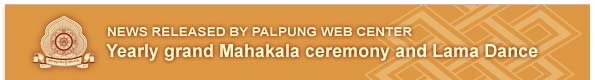 As per tradition, at the end of every lunar year, there is a grand Mahakala Puja and Mahakala dance conducted. This year it started on 2 February 2013 and continued until 9 February 2013. The Mahakala lama dance was performed on the 8th to the 9th for two days according to the tradition of Palpung Monastic Seat.