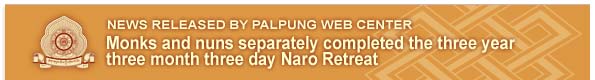 On the first day of the Tibetan New Year 2014, the Tibetan Wood Male Horse year, a total of 30 monks and 14 nuns separately completed the three year three month three day Naro Retreat at Palpung Sherabling Monastic Seat.