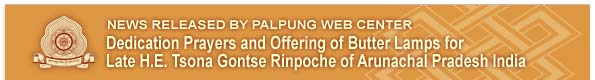 On the evening of the 17th of May 2014, all the Tulkus, Khenpos, Lamas and sangha of Palpung Sherabling Monastic Seat gathered in the main courtyard where Guru Vajradhara Chamgon Kenting Tai Situpa conducted prayers for the late H. E. Tsona Gontse Rinpoche. The five prayers of aspiration were performed and butter lamps lit for His Eminence the 13th Kyabje Tsona Gontse Rinpoche who passed away last night in New Dehli.
