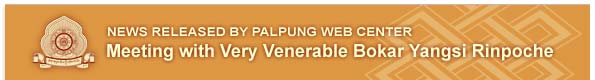 On the morning of the 5th of February 2015, the reincarnation of Very Venerable Bokar Rinpoche who was recently recognized by H.H. the 17th Gyalwang Karmapa had an audience with Guru Vajradhara Chamgon Kenting Tai Situpa and Very Venerable Bokar Yangsi Rinpoche made the traditional mandala offerings to Guru Vajradhara. V. V. Yangsi Rinpoche received blessings from Guru Vajradhara and also gifts such as a fine Buddha statue and some Texts. Palpung Labrang also made a mandala offering to the Very Venerable Yangsi Bokar Rinpoche which was followed with a traditional tea ceremony.