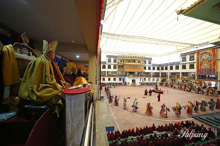 On the February 26, the preliminary Gutor Mahakala vajra dances that bring liberation upon seeing were performed without masks. On the following day, the main masked sacred dances were conducted, followed in the afternoon by the ritual for averting obstacles, which included casting out the torma and performing a supplementary fire offering ritual. On the 28th, the Wood Dragon year's Grand Gutor Mahakala Puja was concluded with the ritual for receiving siddhis and a ganachakra feast.