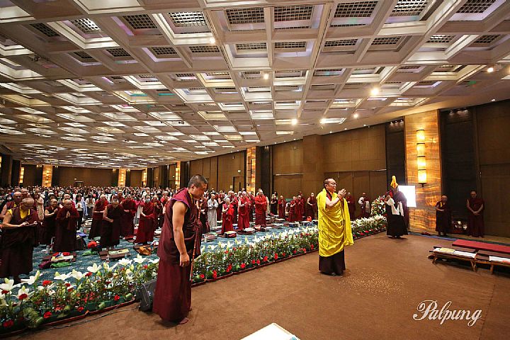 From April 1 to 7, 2025, Guru Vajradhara His Holiness the 12th Chamgon Kenting Tai Situpa bestowed the seventh year of the transmission of the "Mahamudra Ocean of Definitive Meaning" — essential instructions summarising the profound meaning of the all sutras and tantras — to students from around the world who practice the yoga of Mahamudra. This profound transmission was requested by numerous devoted international students and organized by the Palpung Institute of Buddhist Studies at the Leela Ambience Convention Hotel in Delhi, India.