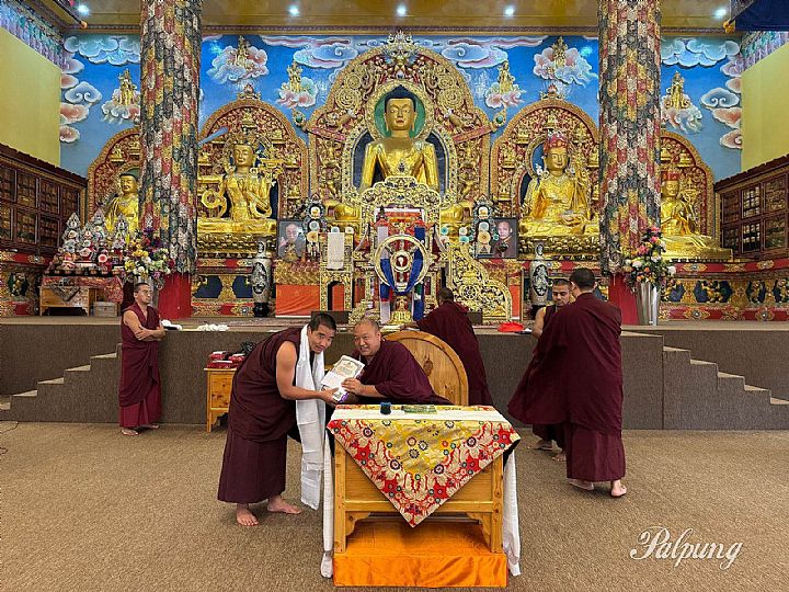 On April 16, 2025, the ceremony to announce the 2024 annual examination results of the Monastic College, Sanskrit department and Palpung University Buddhist Science was held at Palpung Sherabling Monastic Seat. In the presence of head Khenpo and the entire monastic community, the representatives of these education departments announced the results of the various exams. Following that, Head Khenpo rewarded the top students.