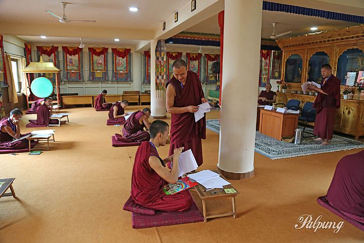 From August 5 to 7, 2025, over a period of three days, the second-year students of the second batch of the Master of Buddhist Sciences program at the Sanskrit Grammar Department of the glorious Palpung Sherabling Monastic Seat in India took their mid-term examinations. The exams covered various subjects, including grammar - focusing on Situ Panchen's Extensive Commentary on "The Thirty Verses" and "The Application of Gender Signs", The Jewel Ornament of Liberation by Gampopa and poetry, testing the students' proficiency in their current curriculum.