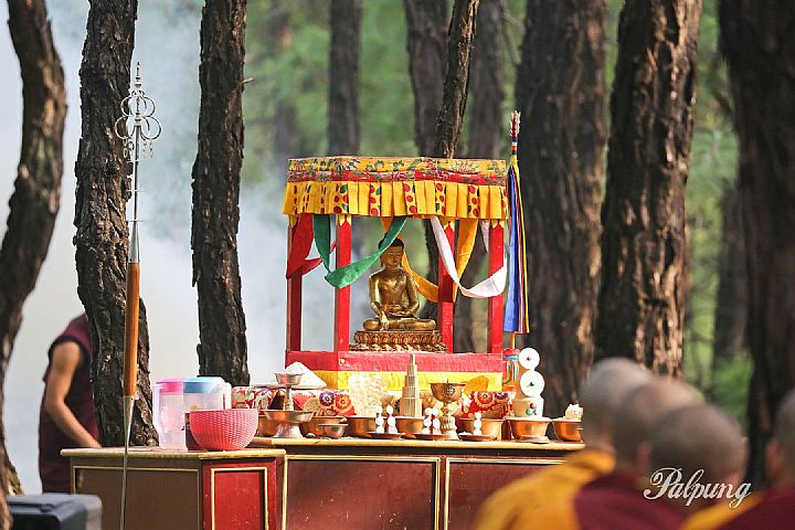 OnSeptember 20, 2025 after completing the one-and-a-half-month rainy season retreat, khenpos, acharyas, and monks of the Palpung Sherabling Monastic College cleaned and decorated the temple and arranged offerings on the shrine. In the evening they conducted the preparatory activities of the ceremony for lifting the restrictions, which included Dharma teachings, debates, and discussions that lasted throughout the night.