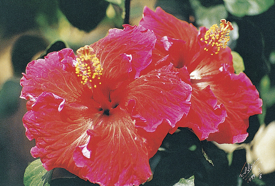 木槿。1998一月的某日,我訪問了山裡的一間大育苗園。一朵盛開的花,非常大,不可能更好了。
