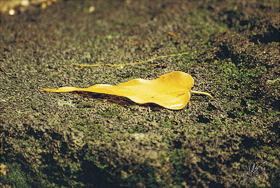 庭園哩,一片葉子掉在石頭上,我拍攝下來。我覺得很好,正是無所事事,而又是一切事的某種狀況。我不移動它,不做任何事,就讓它如是的在那裡……就這樣。沒有人為,沒有,就那樣。