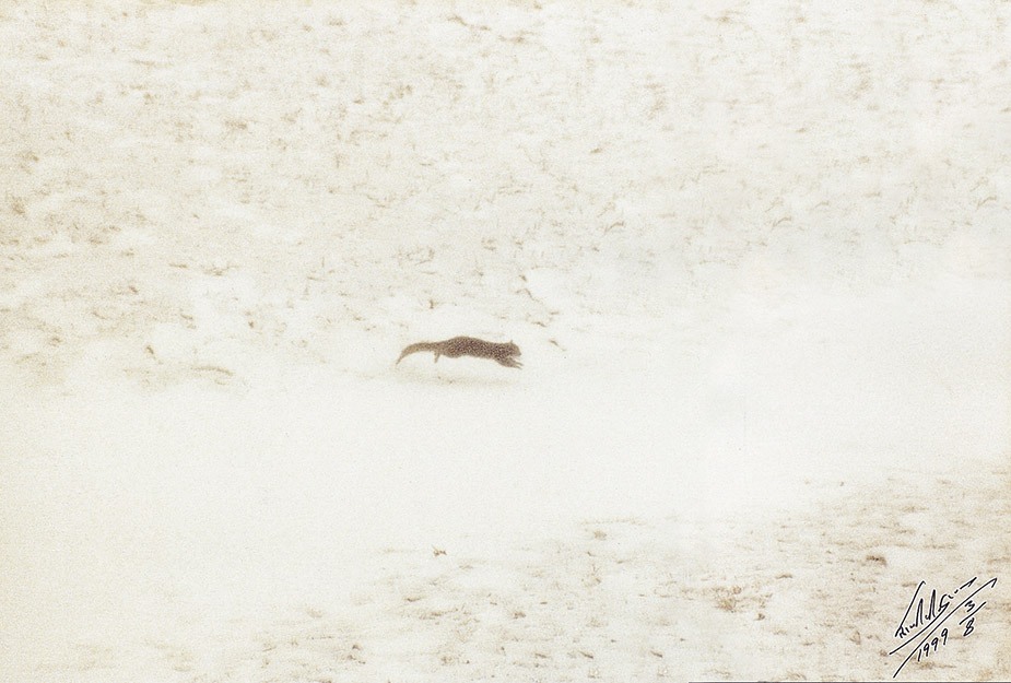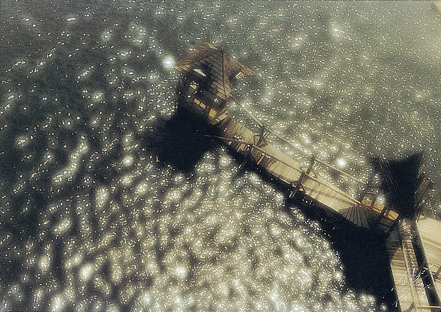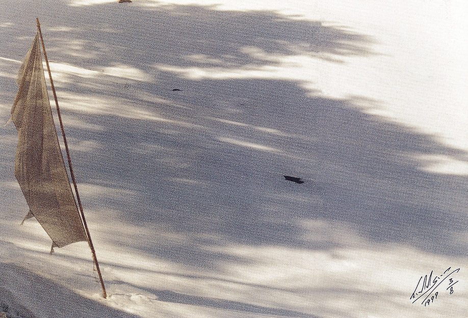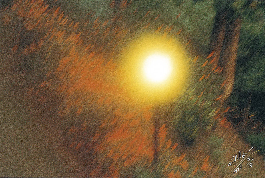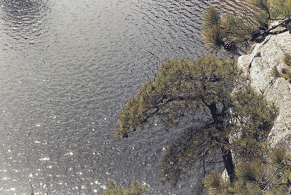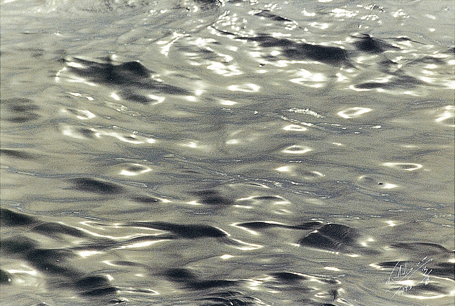 紐約上州的一座湖。我去那裡散步,看見太陽在水上的閃光,我以為陽光也會做出同樣的事。所以就這樣照下了。我以為陽光會是黑色的。如果你仔細看照片,像是珠寶。綠色、藍色、紅色,所有的顏色都在。不可置信的美。沒有曝光不夠,也沒有過度曝光,完美。之所以吸引我,是因為你看到了你想要看的,而看不見你所不想要看的。