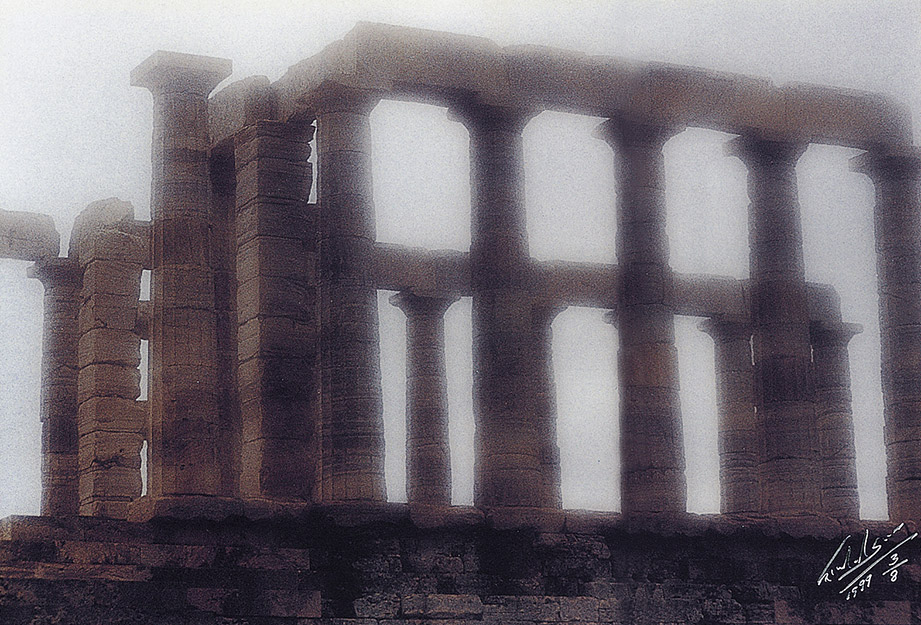 在希臘拍的。很靠近那個小島。我去了希臘兩次,這是第二次。我拜訪了這個地方,照了相,然後開車,十五分鐘後,我照了另一個島(大地)。高高在山丘,俯瞰海。昔日的光輝,人們為此而去。