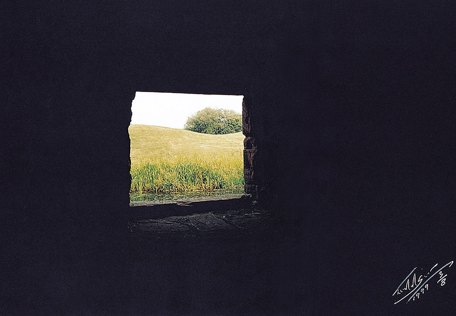 同一地點,城堡。窗框。因為那是一面窗,一個窗框。框住外面的綠意和藍天,很美,像是牆上的一幅畫。所以名稱為窗框。